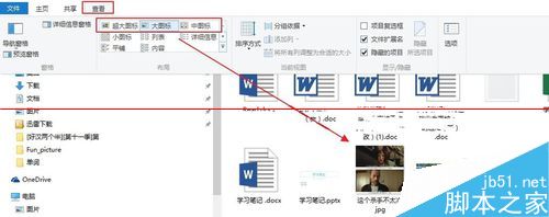 4、关键还在“查看”选项,只有选择“超大图标”,“大图标”,“中图标”(三个中的任意一个)才能显示出缩略图,如下图。