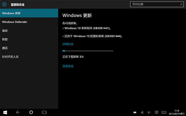 8月19日消息,微软为Win10推送了两枚新补丁,编号分别为KB3081441、KB3081444,用户可在Windows更新中下载安装。