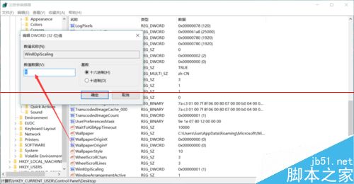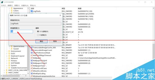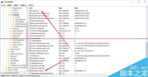 2、打开HKEY_CURRENT_USERControl PanelDesktop,找到Win8DpiScaling和LogPixels两个键值