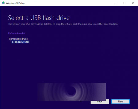 2 )如果你想点击USB闪存盘盘符,从U盘或SD卡中安装。先插入你的闪存盘,从你的媒体创建工具中选择该设备。