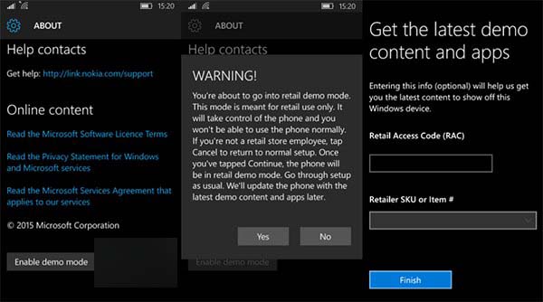 备注:再次提醒,Win10 Mobile零售演示模式不适合正常用户使用,请勿操作!