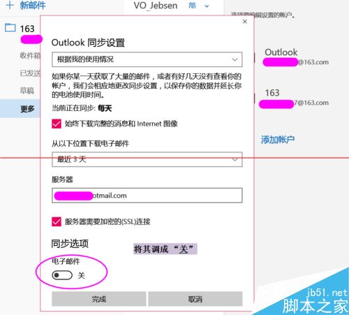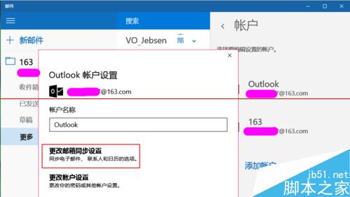 5、选择“更改邮箱同步设置”,然后对同步情况进行更改