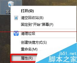 1、回到电脑桌面,在回收站上右击“属性”,就可以进行一些设置。