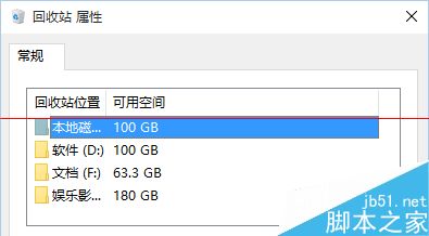 2、这时我们进入道回收站的设置,可以设置回收站所在的盘符,如果你不想设置回收站在系统盘,可以设置其他盘,点选即可设置。
