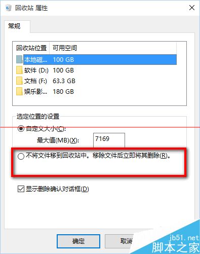 大家可以根据自己的需求来设置回收站大小,和是否把删除的文件留在回收站。