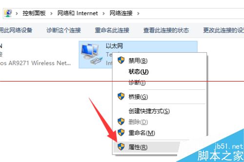 3、此时将进入“网络连接”界面,右击“本地连接”或“无线网络连接”图标,从其右键菜单中选择“属性”项。