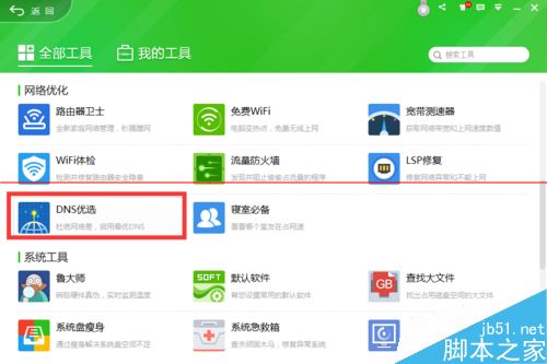 1、在360安全卫士“更多功能”列表中找到“DNS优选”工具进入。