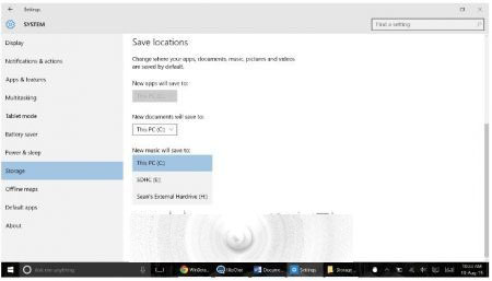 2、当你将页面向下滚动时,你将能看到存储不同类型媒体文件到特定区域的选项。如果你想要自动存储你的音乐到一张你刚刚插入的内存卡中,或者存储电影到一个你刚刚设置好的外接硬盘上的话,这将会是非常方便的。