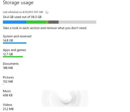 设置中的存储空间将允许你简单查出哪些东西占用了空间,并可以让你轻松地,要么卸载它,要么打开文件浏览器,将其移走。它还能让你看到你的OneDrive已经用了多少空间,查看最近其中变化的功能也是十分有用的。