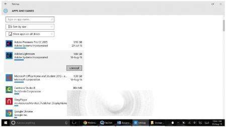 5、打开应用和游戏,你会看到每个程序和应用占用了多少空间,现在使用情况如何。这可以同时展示像Adobe Premiere Pro之类的程序,以及像SlingPlayer之类的应用。你可以简单地通过点击它们,再选择卸载,而去卸载掉它们中的任何一个。