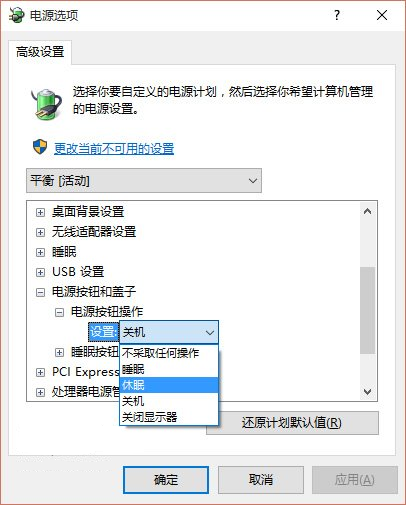 有些朋友可能要问,Win10中貌似没见到“休眠”的选项,这个速度怎么测的?其实,在某些地方还是可以把“休眠”请回来的。比如在“电源选项”(控制面板→电源选项→更改计划设置→更改高级电源设置)中,在“电源按钮和盖子→电源按钮操作”中就可以把机箱上的电源按钮定义为“休眠”功能,此时如果你在开机状态下按机箱电源按钮,就会执行“休眠”操作。