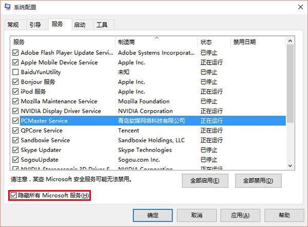 隐藏所有Microsoft服务”后,把还存在的所有服务