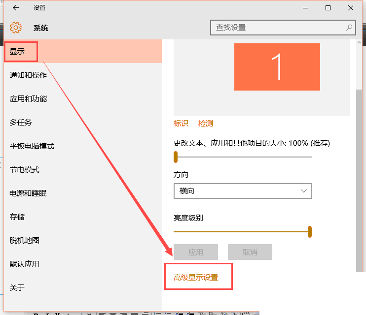 2、右击桌面的空白处--显示设置--高级显示设置(下面),如下图:
