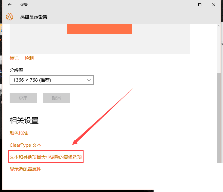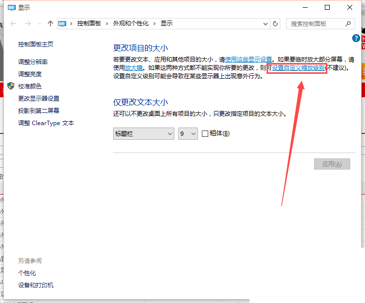 3、选择---文本和其他项目大小调整的高级选项,如下图: