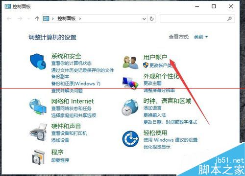 3、在打开的控制面板窗口中点击“用户账户”图标