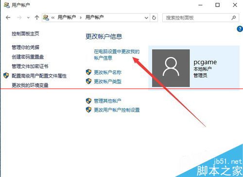 5、在打开的更改账户信息窗口,选择“在电脑设置中更改我的账户信息”链接