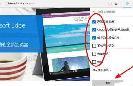 3、选中要删除的历史浏览记录,然后点击“清除”按钮,如果要彻底删除所有记录,可以把所有选项都勾上