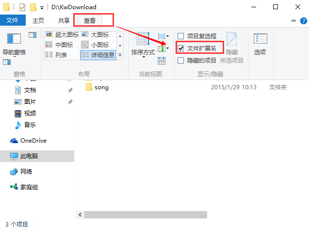 3、之后,我们就可以看到,文件的后缀显示出来了!方法二:1、还是点击查看,然后点击“文件夹选项”,