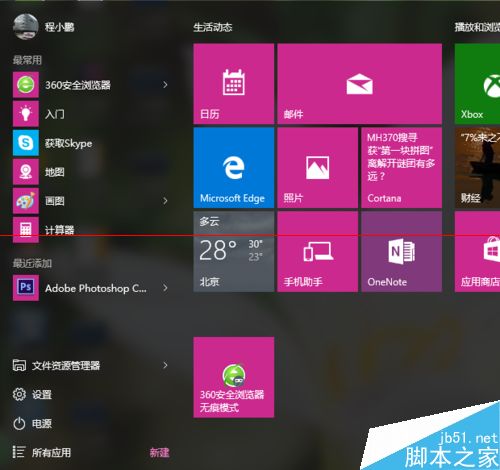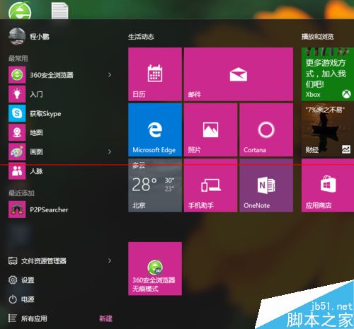 9、打开Win10系统中的开始菜单,可以看到最开始的人脉应用已经消失不见了,意味着我们已经成功卸载掉了人脉应用,那么这些原本不可卸载的自带应用就可以轻松的卸载掉了。