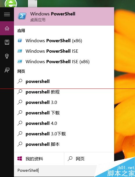 1、首先,请大家点击Windows系统左下角的搜索图标,也就是平常使用的小娜搜索框,然后输入“Powershell”命令。