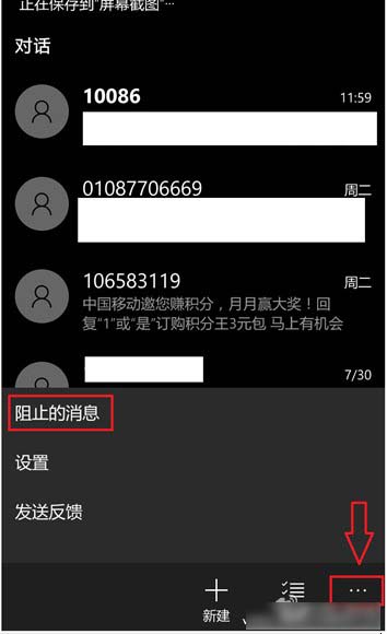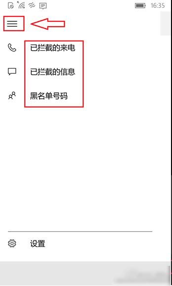 在通话历史记录或者短信界面中,点击屏幕下方工具栏的菜单按钮,在弹出的菜单中点击“阻止的来电”和“阻止的消息”,进入在骚扰拦截应用,在应用中查看黑名单,还可以对黑名单进行编辑。