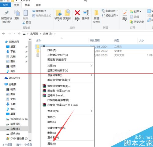 2、首先右击共享,在单击属性。