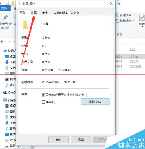 3、出现了共享属性,单击共享。
