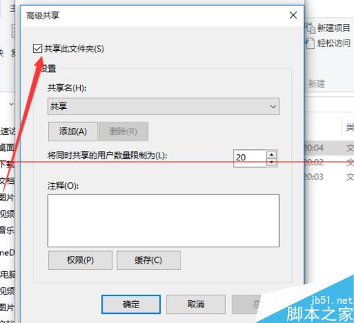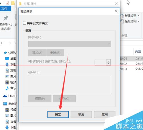 4、打勾共享此文件夹,在单击确定。
