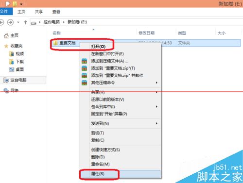 2、首先右击重要文档,选择“属性”。