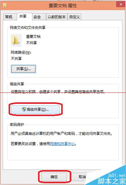 3、出现了重要文档属性,在单击“高级共享”。