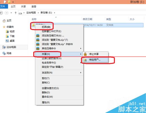 1、如下图是第二方法,右击“重要文档”,选择“共享”-特定用户。