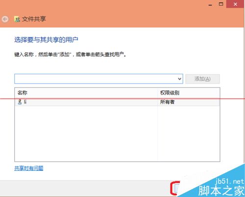 2、出现文件共享对话框,选择“共享”。