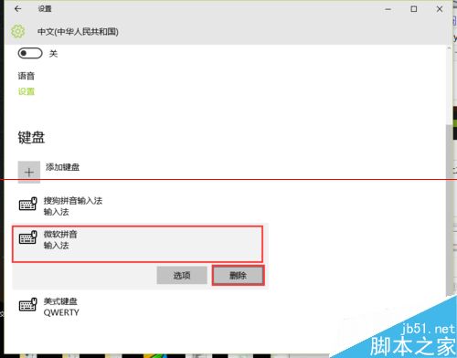 4、比如我不想要微软拼音,先在微软拼音上左键单击,然后在删除上左键单击,微软 拼音瞬间消失。