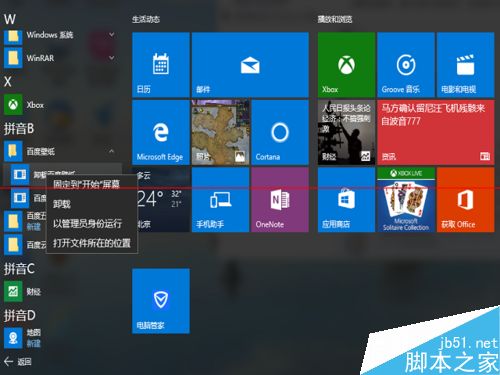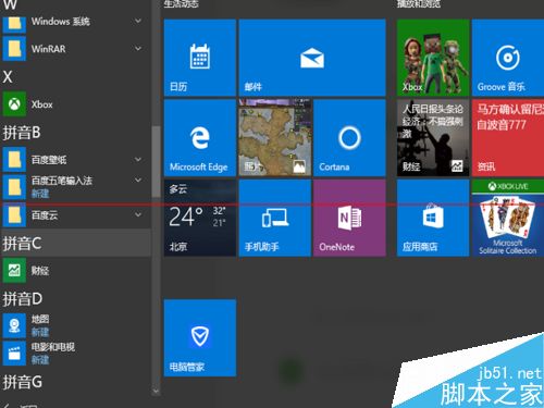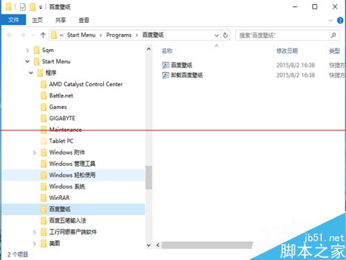 2、滚动鼠标滚轮键向下,直接看到拼音B,我们要删除的壁纸程就在B下方,和win7不一样,在这里右键直接点程序栏是没用的