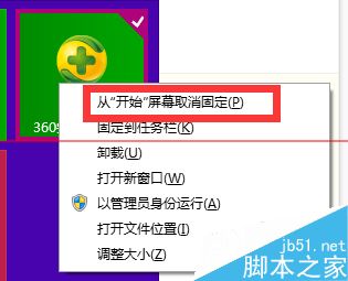 1、如果觉得开始屏幕的太繁杂想要解除一些快捷方式,首先,打开开始屏幕找到想要接触的快捷方式,鼠标悬停,此处以360为例