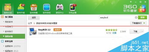 1、通过360软件管家,安装 EasyBCD —— 系统引导重置工具