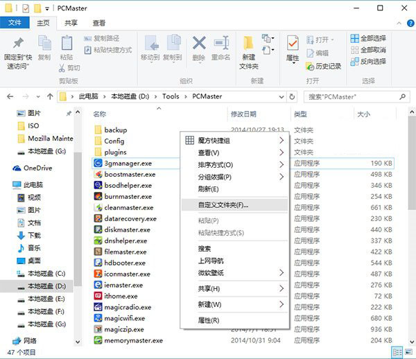 在非系统文件夹内,单击鼠标右键弹出菜单后,点击“自定义文件夹”,只会打开文件夹属性窗口第一个标签页,而不会像之前Win7/Win8.1那样自动跳转到该窗口“自定义”标签页下。