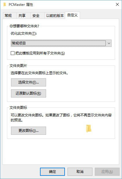 ▲点击“自定义文件夹”后弹出的窗口,并不会跳转到第五个标签页“自定义”