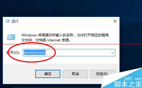 2、在运行框中输入命令:services.msc,打开服务窗口