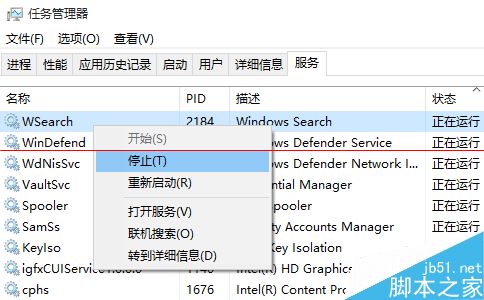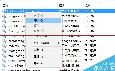 4、可以选择一个服务,点击右键对服务进行操作,停止,启动,重启等等