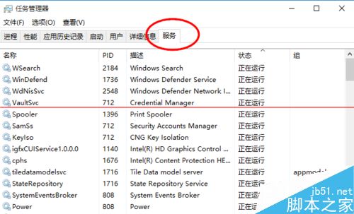 2、定位到“服务”tab,这里也列出了系统的所有服务