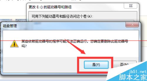 4、你需要先记住你这个盘的代号,是D盘呢还是E盘。以备等下的显示。记住后我们就可以点击【删除】了。你不用担心,这里删除只是把这个盘的盘代号给删掉~完完全全不会影响盘里的内容。