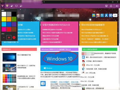 ▲左上角“笔”有12种颜色可选,笔尖尺寸有三种,笔迹会覆盖与之重叠的网页内容