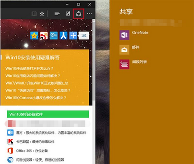 ▲“共享”有三种方式:OneNote、邮件、阅读列表