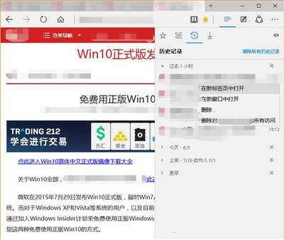 4、历史记录 另外,“中心”内的“历史记录”项目也进行了独特改进。每个项目右侧都有“x”删除按钮,并且在单项记录上点击右键后,还可以删除该条记录所属网站的全部浏览记录,非常方便。