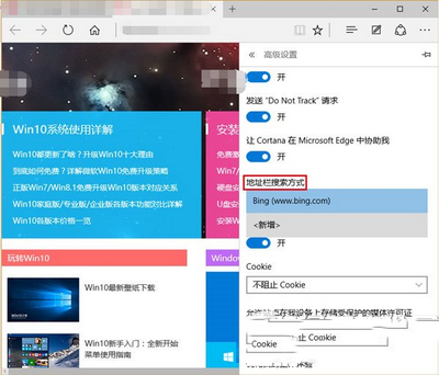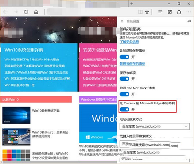 ▲Cortana设定要在Edge浏览器的“高级设置”中进行