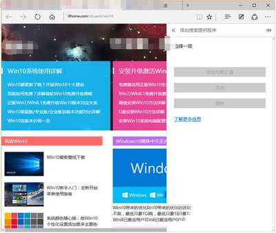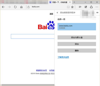 10、地址栏搜索方式 Edge浏览器地址栏默认只支持必应搜索,添加其他搜索引擎相对麻烦一些,需要先打开该引擎页面才能进行添加。