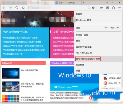 11、兼容性 在文章开头,我们曾经强调过Edge浏览器的兼容性还不能和IE11相比,因此在遇到某些特殊网页时,还需要靠万能的IE浏览器“拔刀相助”。微软也在Edge浏览器的“…”菜单中放置了“使用Internet Explorer打开”的选项,点击后自动打开IE,并且跳转到请求页面。