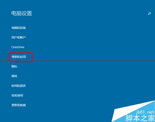 3、在”电脑设置“中我们选择”搜索和应用“