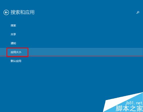 4、在”搜索和应用“中我们选择”应用大小“